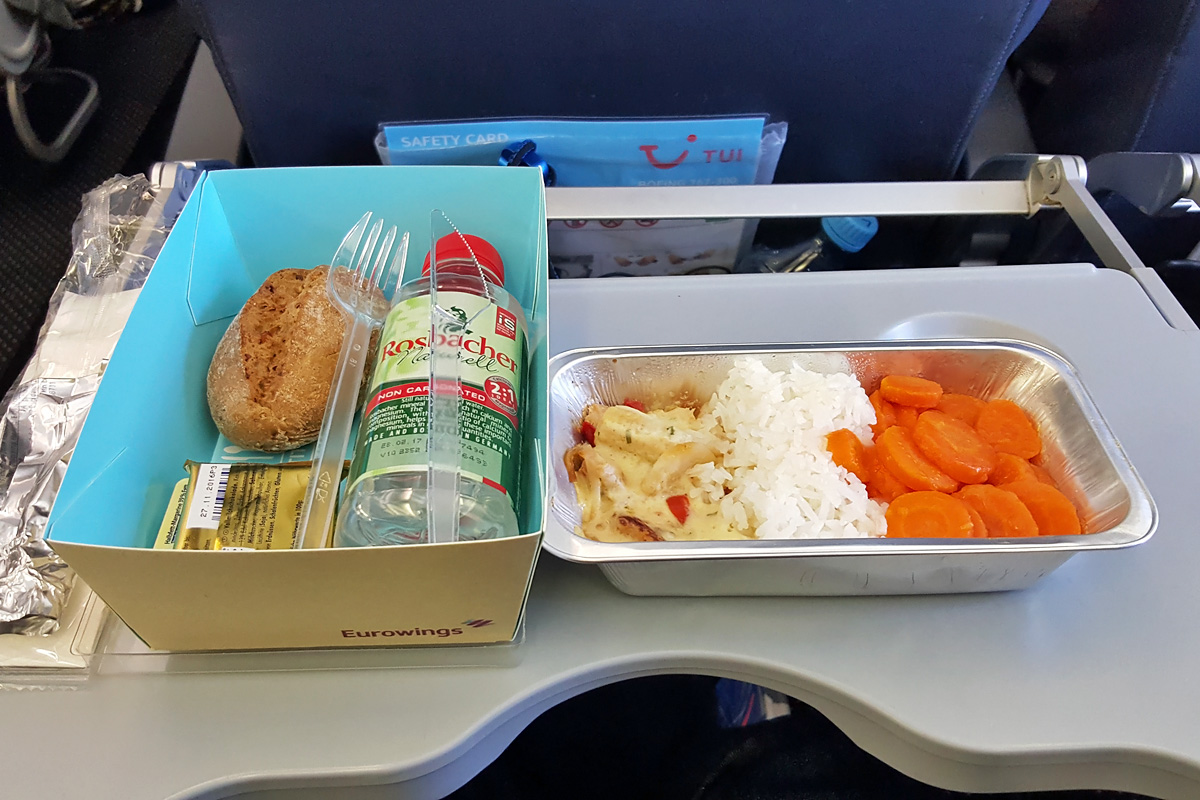 Der Flug von CGN (Köln) nach PUJ (Punta Cana) war ein Eurowings-Flug. Durchgeführt wurde der Flug von TUIfly mit einer Boeing 767-300 (D-ATYE). Der Flug war ruhig und ereignislos. Für die Passagiere in der Premium ECO (Reihe 1-4) war das Inflight Entertaiment kostenlos, ebenfalls Decken und Kissen. Der Sitzabstand war großzügig und hatte durch die 2-3-2 Bestuhlung in der Premium ECO auch außreichend Seitenabstand. Nach dem Start gab es ein erstes warmes Essen. Im Laufe des Fluges gab es drei weitere Getränkerunden und zum Abschluss einen Snack: