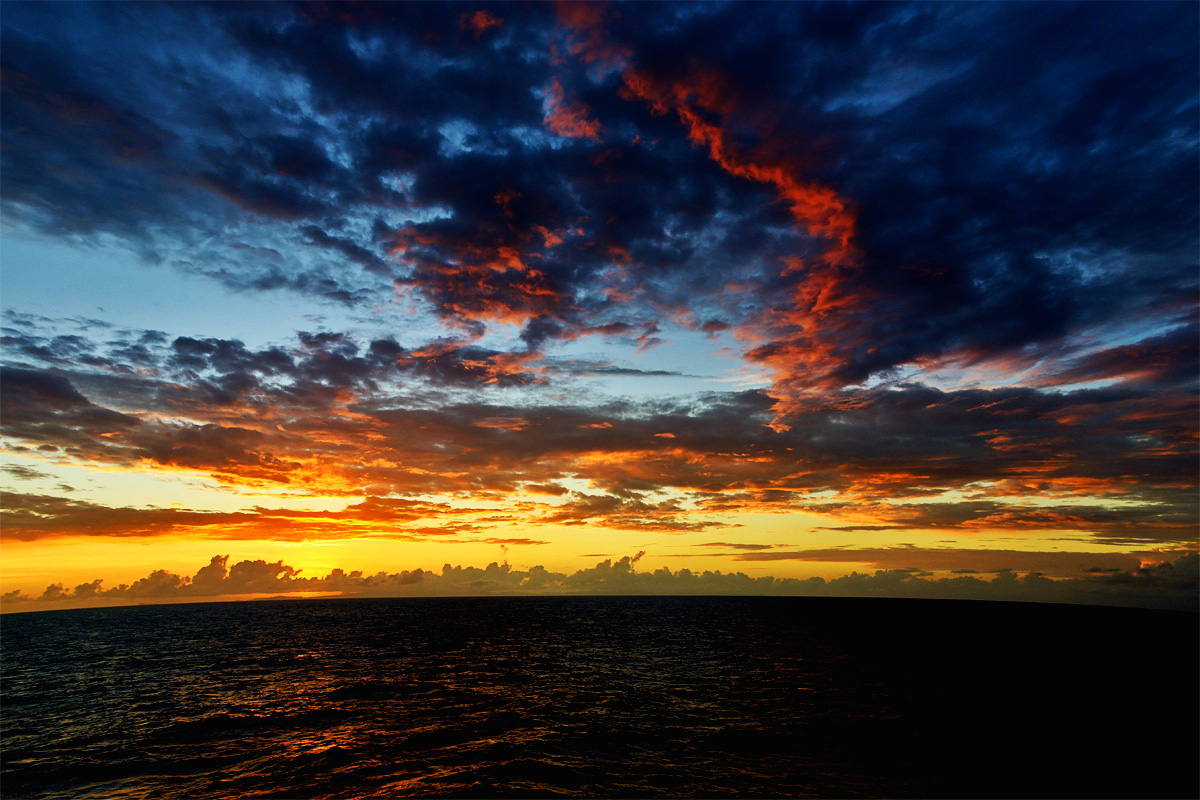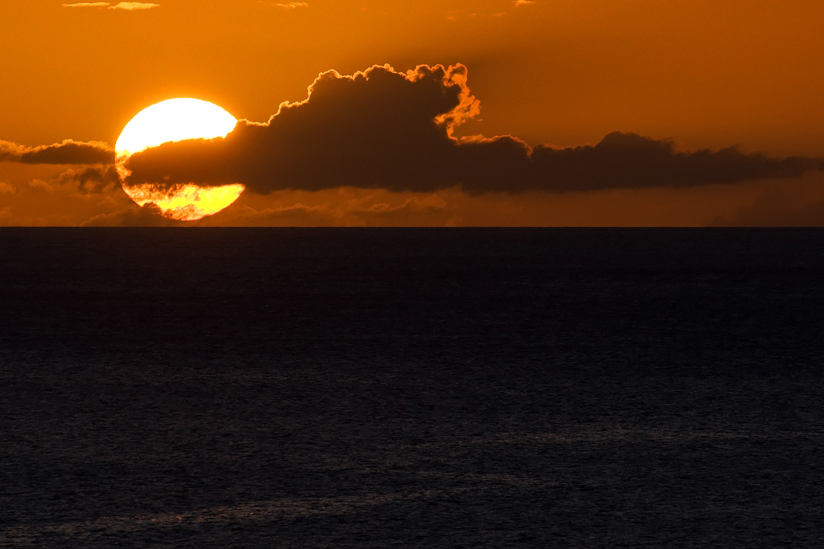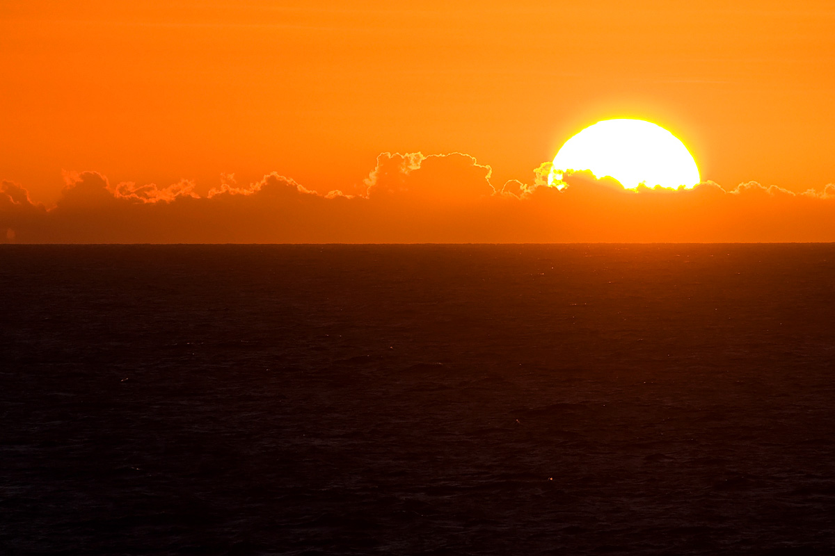 Der Seetag endet mit einem herrlichen Sonnenuntergang und einer atemberaubenden Abendstimmung: