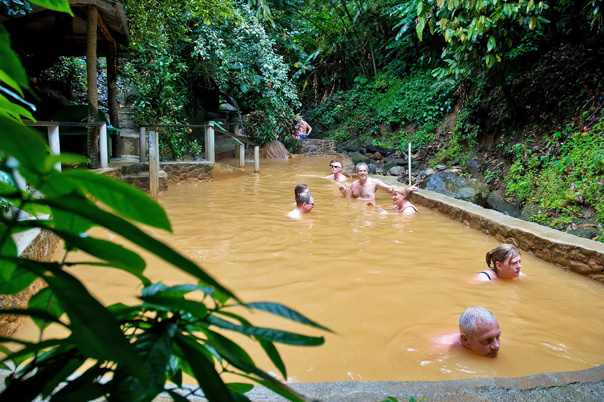 In Dominica ging es in den Regenwald zu einer kleinen Schlucht die man durchschwimmen konnte und einer heißen mineralischen Quelle, in der man baden konnte und hinterher (angeblich) 10 Jahre jünger aussieht: