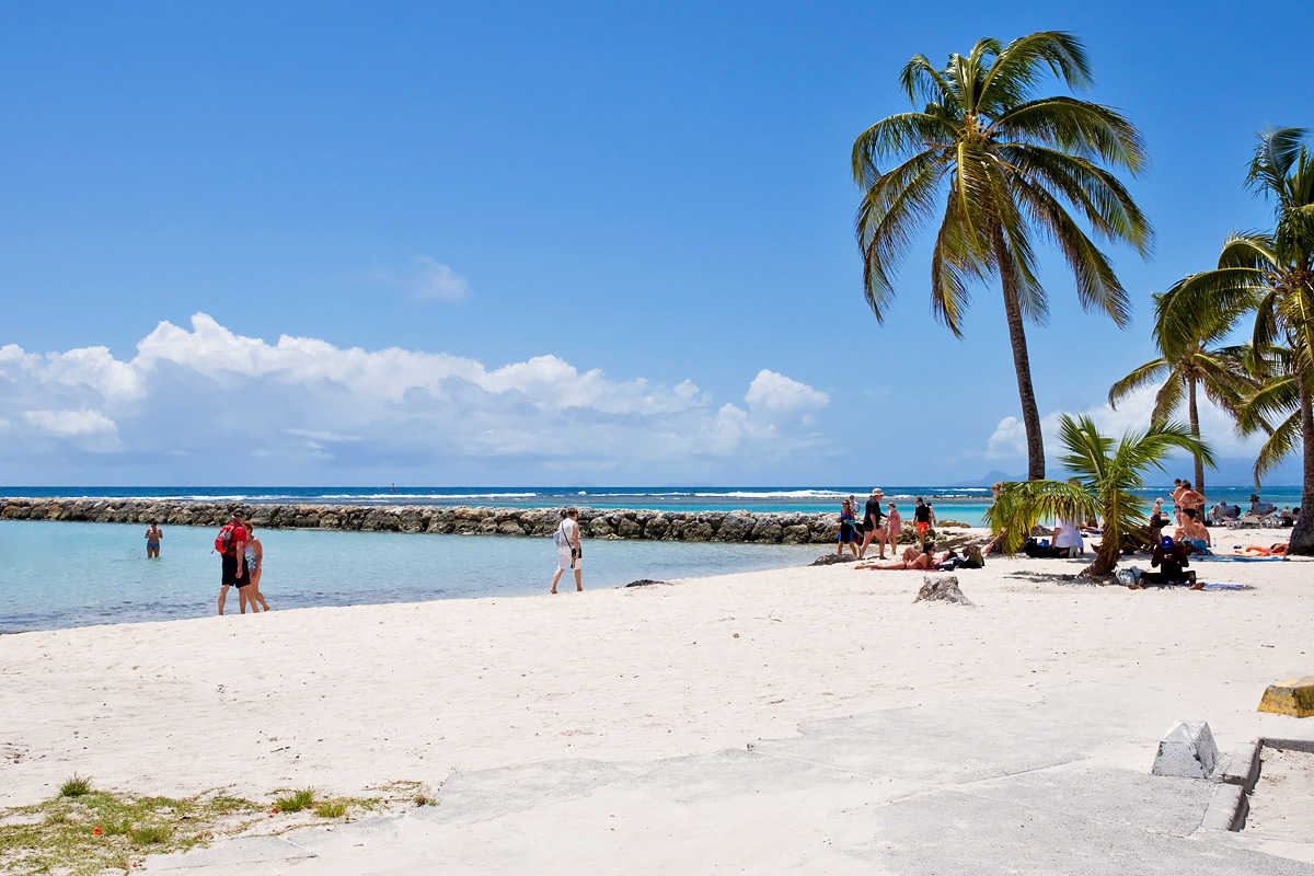 In Guadeloupe ging es "nur" an einen sehr schönen Strand mit weißem feinen Sand und Palmen bei Sainte-Anne. Das Wasser war herrlich und man konnte mal einfach nur entspannen: