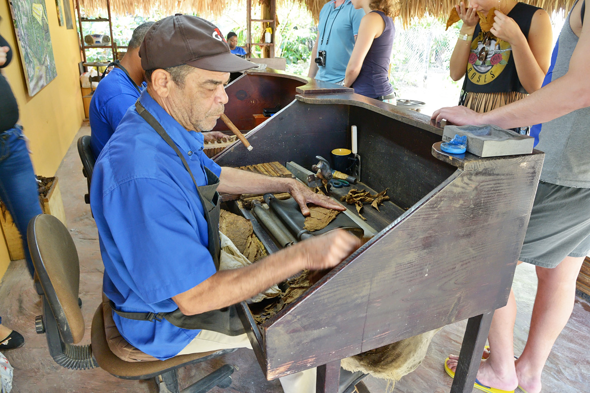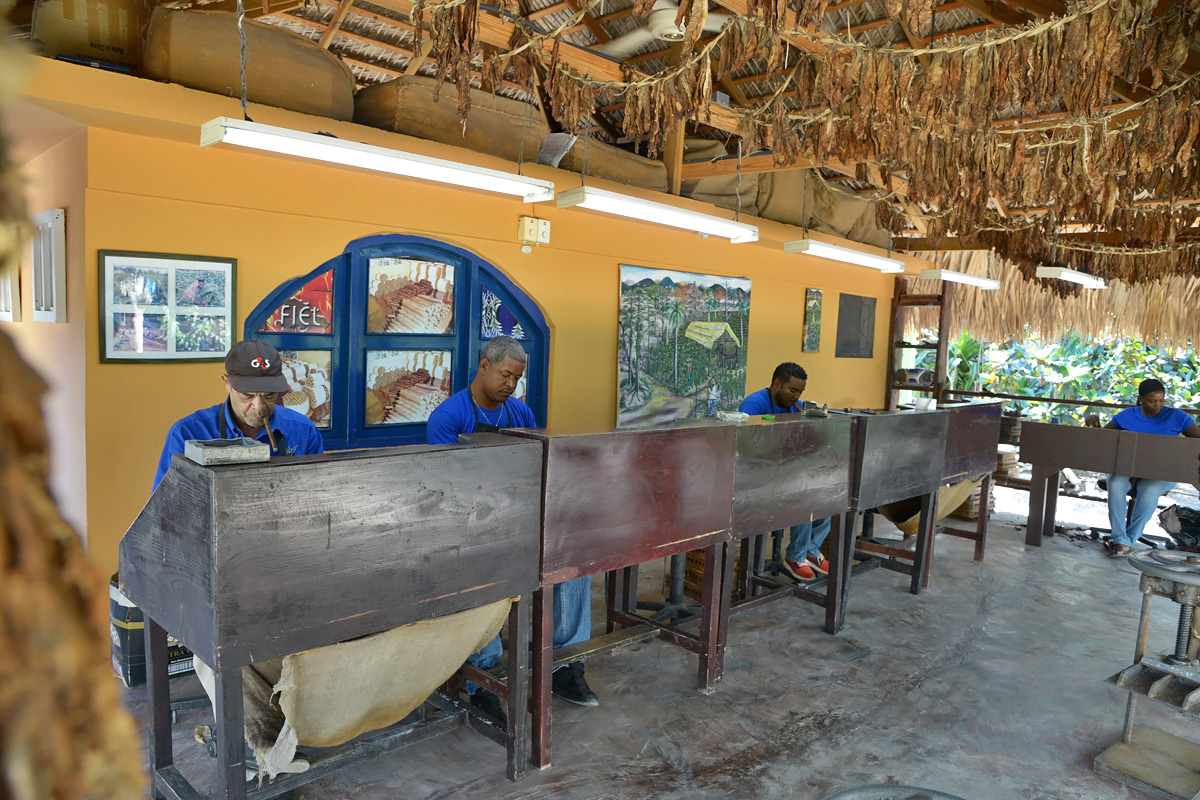 Heute haben wir die Gelegenheit eine kleine Zigarren Manufaktur in der Nähe unseres Hotels zu besuchen. Dabei ist "klein" hier wirklich sehr wörtlich zu nehmen. Bei unserem Besuch arbeiteten gerade mal vier Leute in der Produktion und viel mehr sind dort sonst sicher auch nicht tätig. Dafür wird alles wirklich von Hand und in Ruhe mit viel Sorgfalt gemacht: