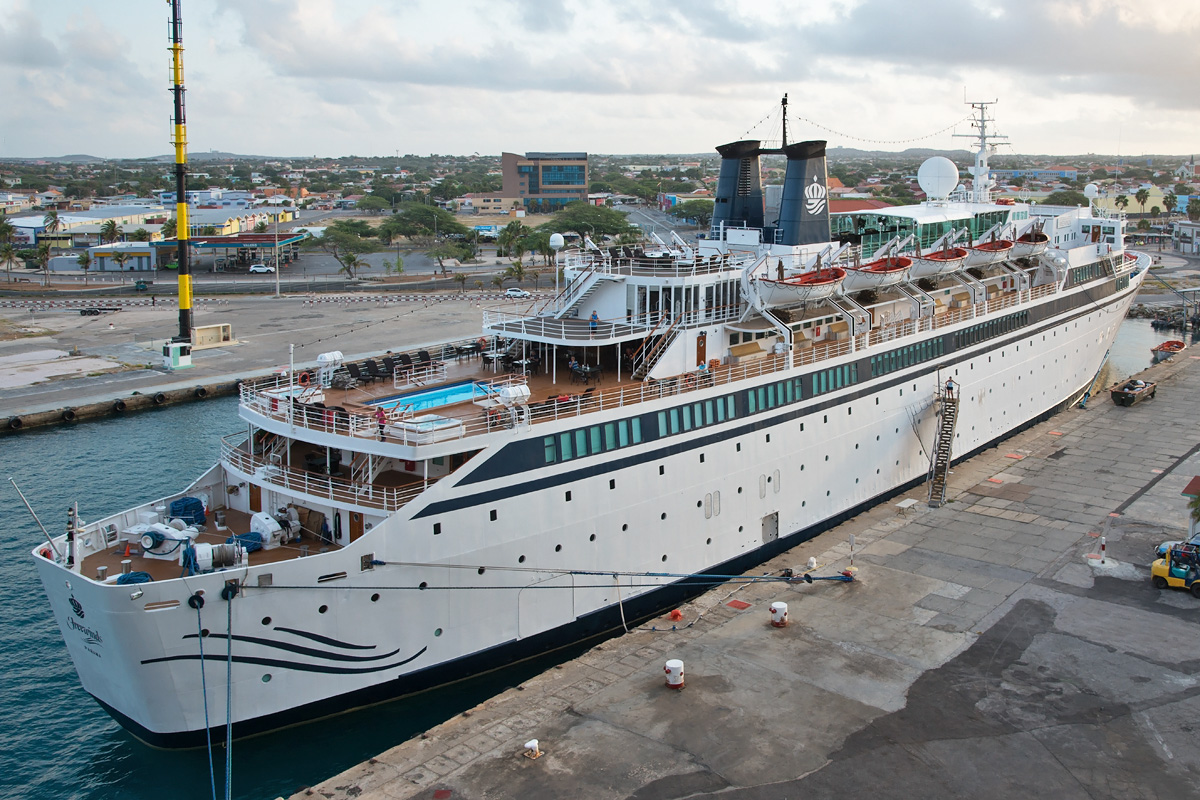 Neben uns liegt noch ein weiteres etwas kleineres Kreuzfahrtschiff