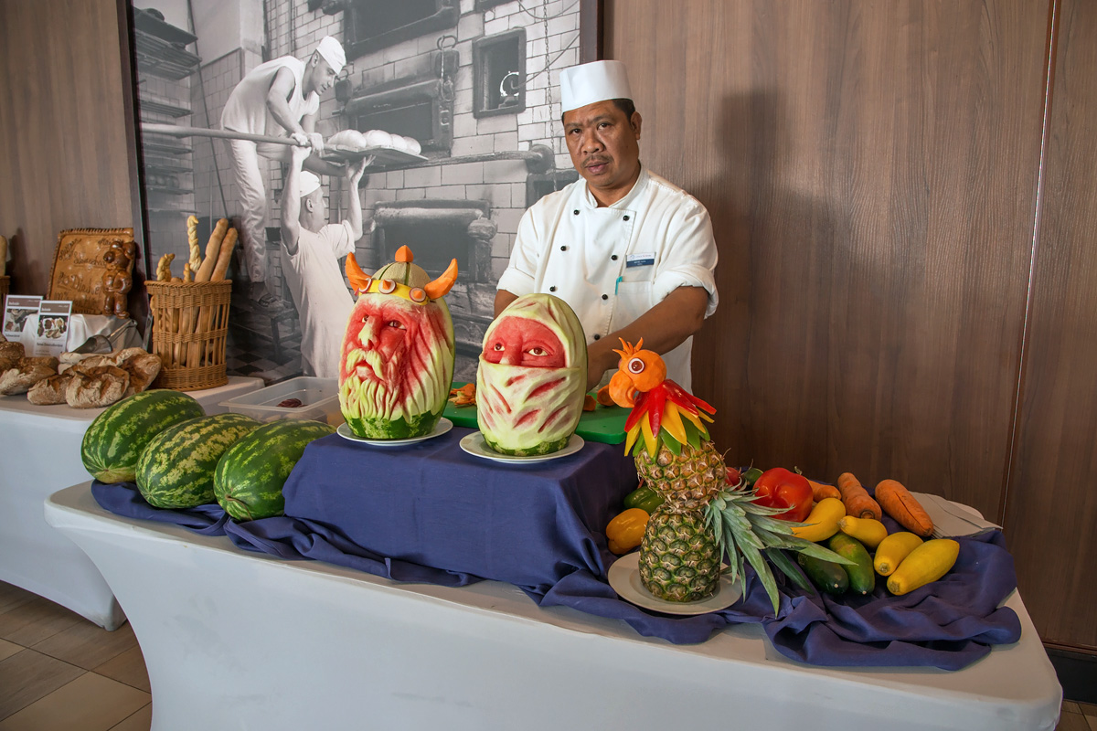 Zurück an Bord kann man kulinarische Kunstwerke bewundern: