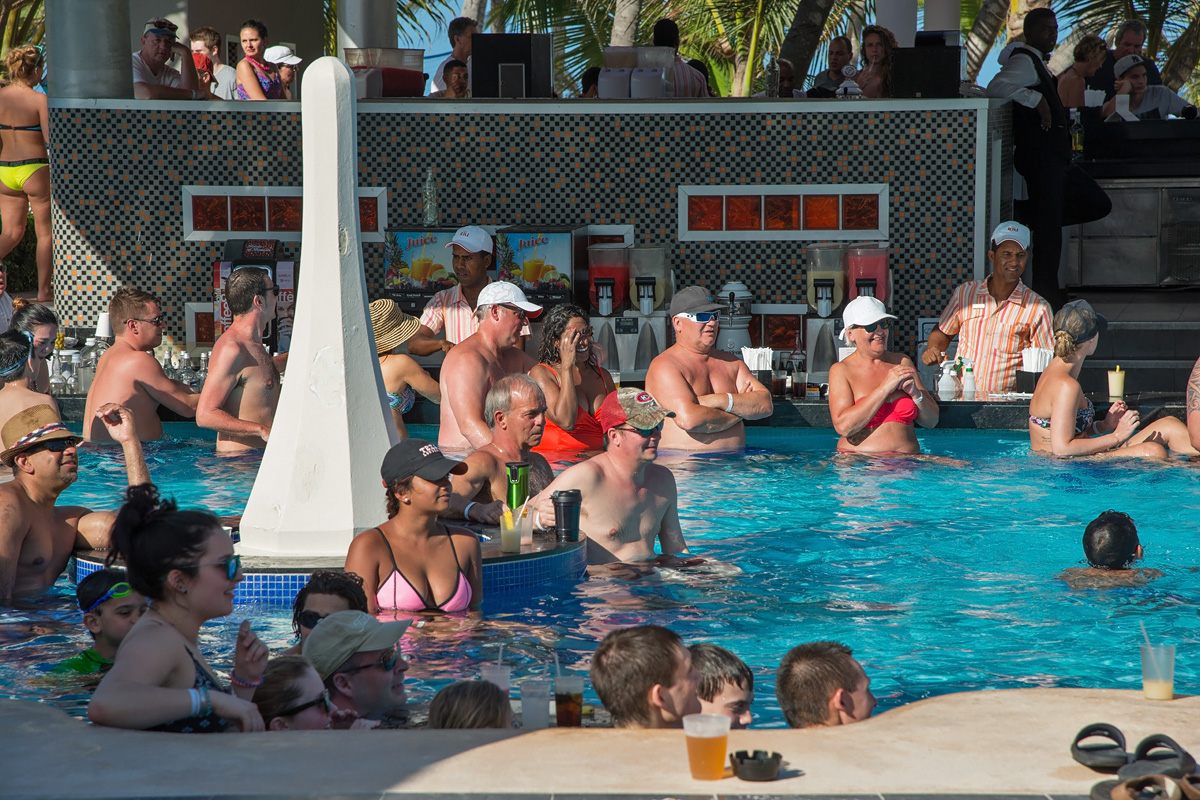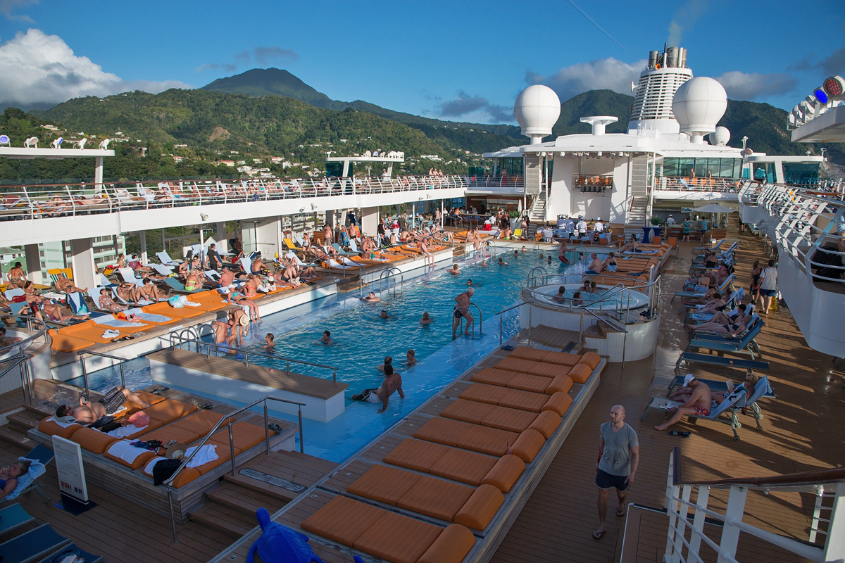 Barbados ist für einen Teil der Mitreisenden Endstation der Kreuzfahrt. Es kommen aber auch viel neue Gäste an Bord. Nach dem Auslaufen werden die neuen Gäste bei einer Poolparty an Bord begrüßt. Leider fegt genau zu dieser Zeit ein Tropenregen über das Schiff. Und wenn es in der Karibik regnet, dann auch richtig: